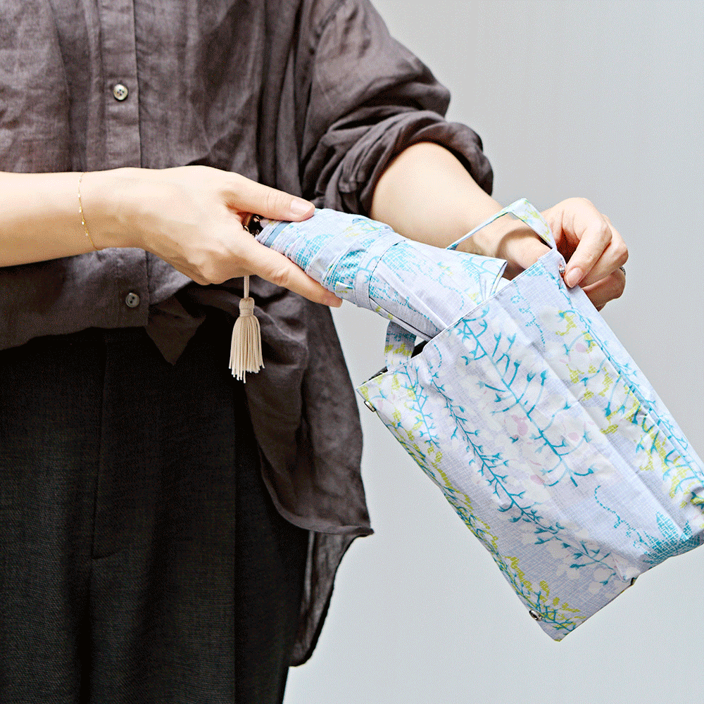 傘袋は収納しやすいようミニバッグ仕様で、綺麗に畳まなくても収納可能。