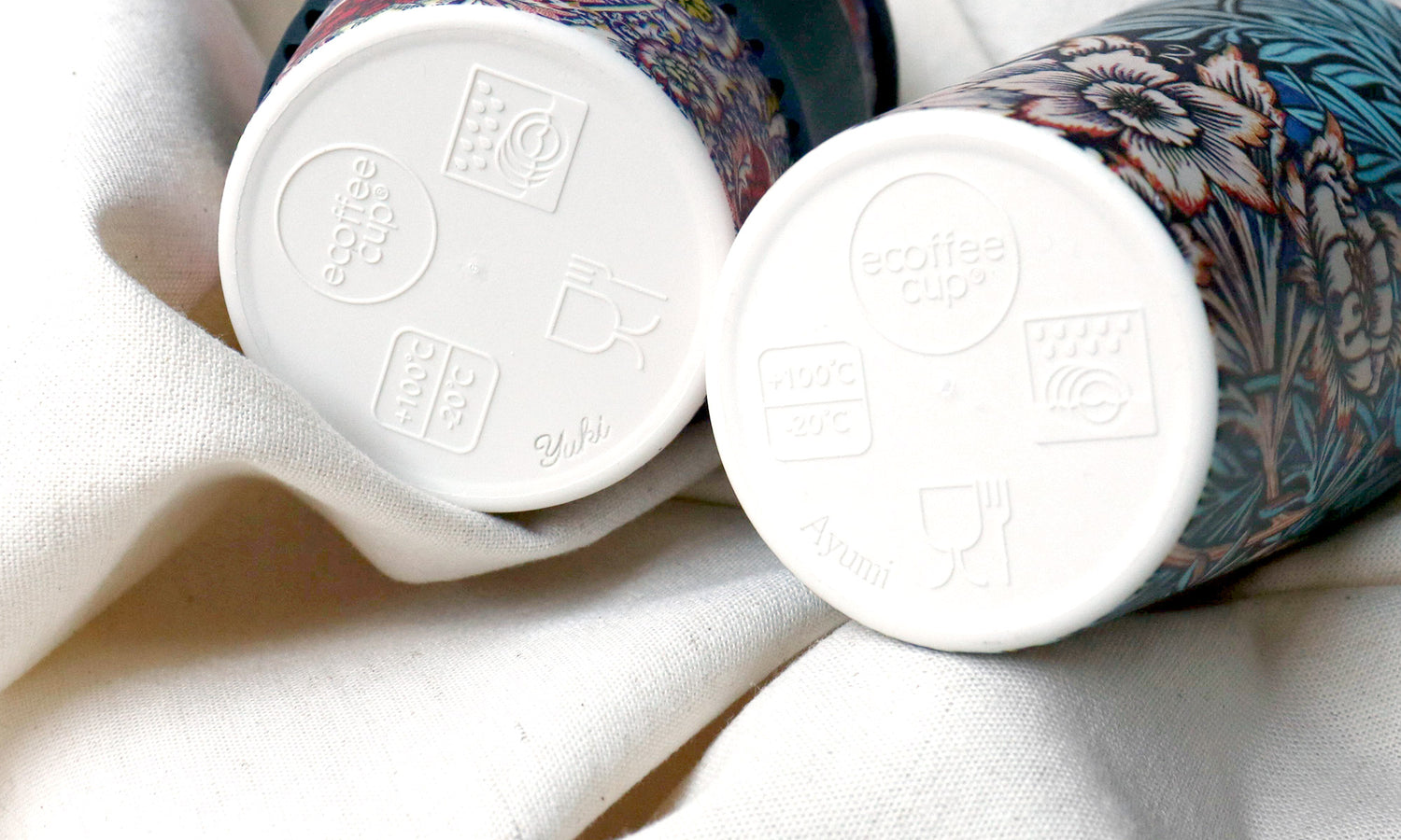 カップ本体の素材をバンブーファイバー(竹の繊維)から植物由来バイオプラスチックの一種・ポリ乳酸(PLA)にリニューアルし、より環境に優しい製品へと進化しました。人体への有害性が指摘されているBPA、BPS、フタル酸エステルは含まれません。ホルダーやフタは食品グレードのシリコンでできており、ホットドリンクにも対応しています。