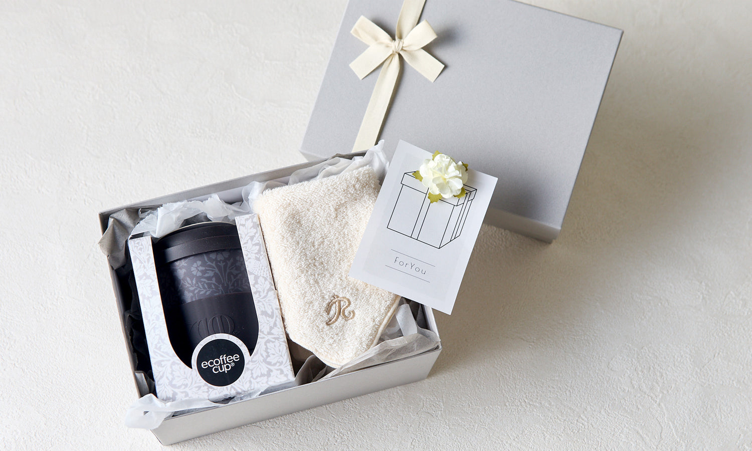 愛媛県今治市で作られたふわふわのハンカチをセットにしたギフトボックスです。