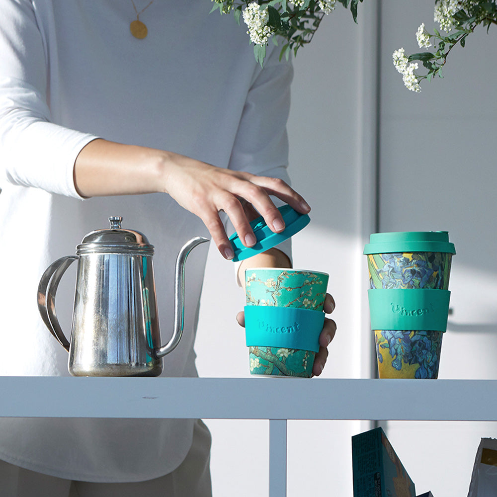 カップ本体の素材をバンブーファイバー(竹の繊維)から植物由来バイオプラスチックの一種・ポリ乳酸(PLA)にリニューアルし、より環境に優しい製品へと進化しました。人体への有害性が指摘されているBPA、BPS、フタル酸エステルは含まれません。ホルダーやフタは食品グレードのシリコンでできており、ホットドリンクにも対応しています。