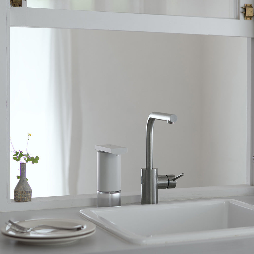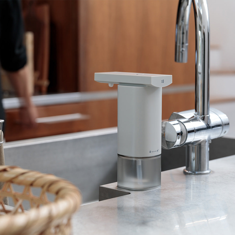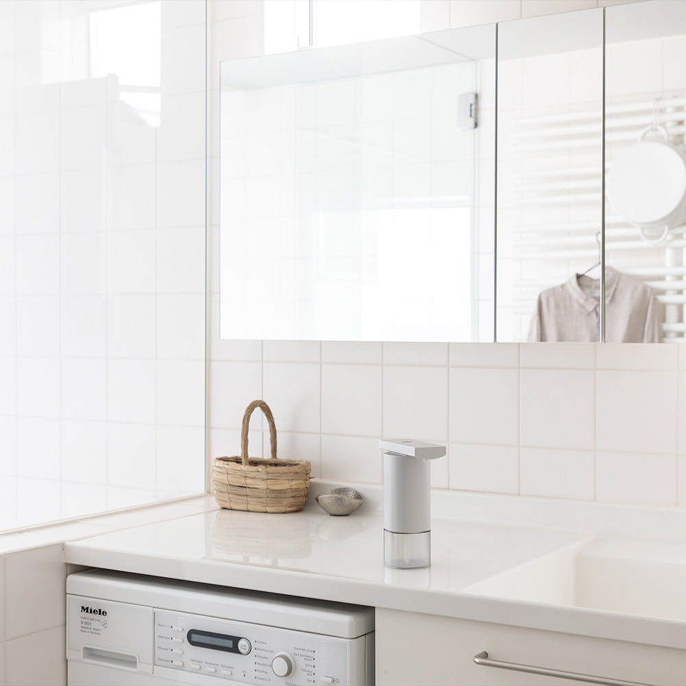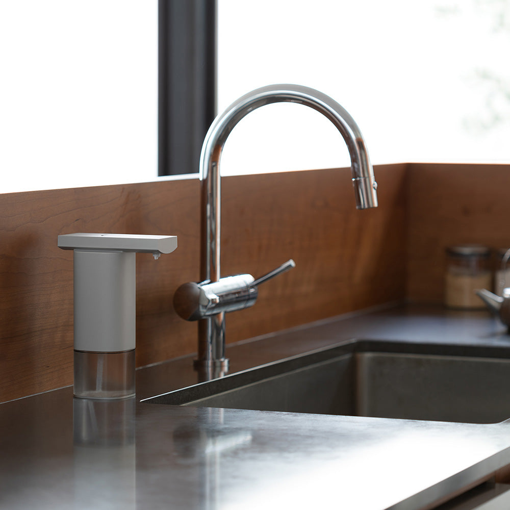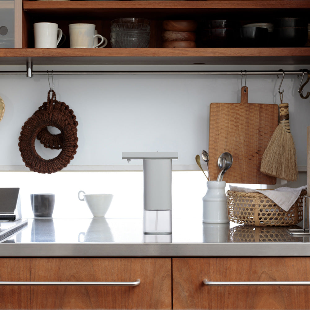 手をかざすだけで適量が出るオートディスペンサーは、触れずに使える衛生面への配慮と、暮らしにすっとなじむシンプルなデザインが魅力です。