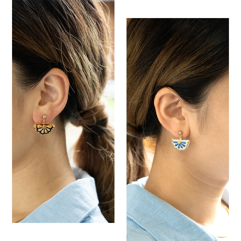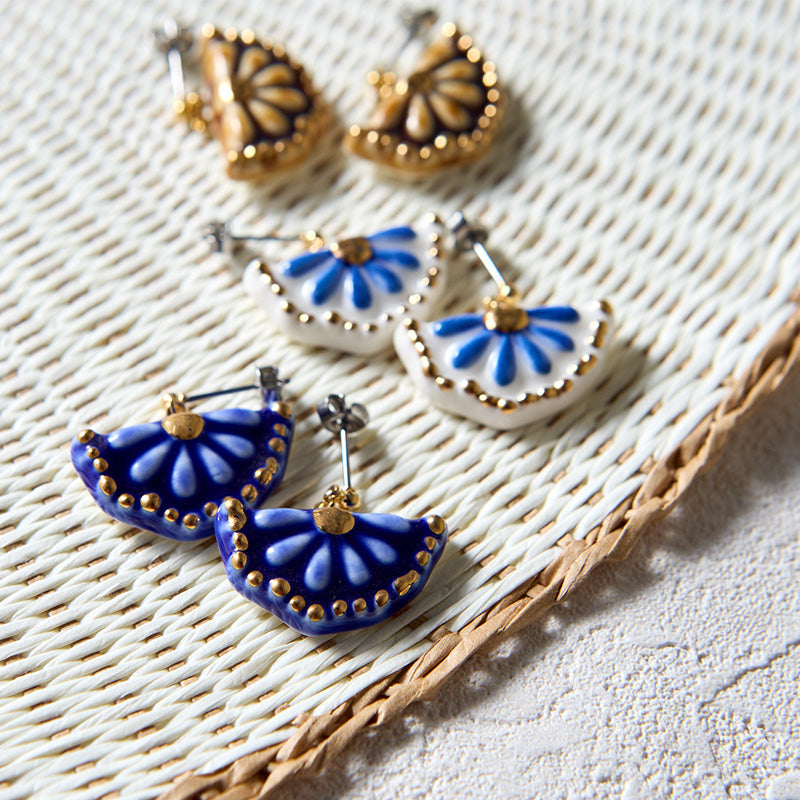 およそ千三百年の歴史を持つ美濃焼の産地・岐阜県多治見市で、タイルの製造や販売を行ってきました。平成二十五年に始動したアクセサリー部門は、タイルが「建物を彩る」ように、その美しさで「人を彩る」ことをコンセプトとしています。一粒一粒の小さなタイルの中には、伝統的な模様や技法、やきもの特有の色や風合いを凝縮しています。