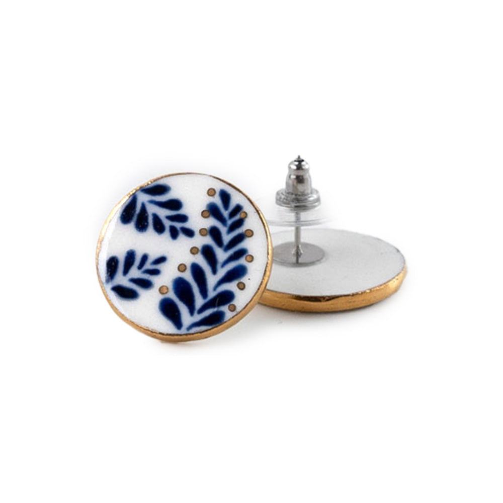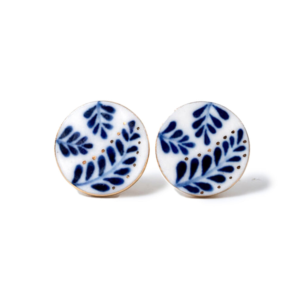 揺らぎのある線やにじみは、ハンドペイントならではの温かみ。白地に呉須の青、金彩を施して品よく仕上げました。