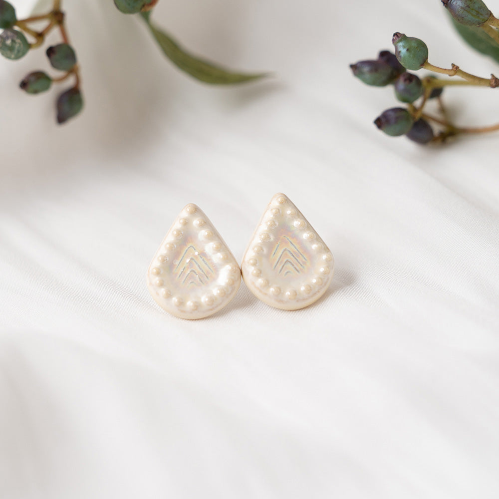 まるで真珠のような、乳白色のきらめきを放つ釉薬。その魅力を最大限に引き出したくてフォルムのバリエーションを増やし、シリーズ化しました。「人魚の涙」とは、真珠(パール)の別名でもあります。