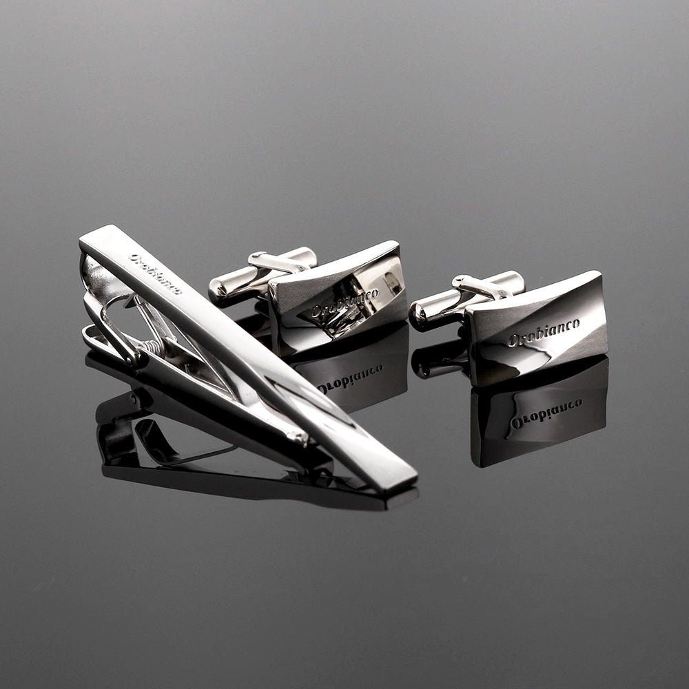 メンズアクセサリーコレクションのオロビアンコのタイピンとカフス。