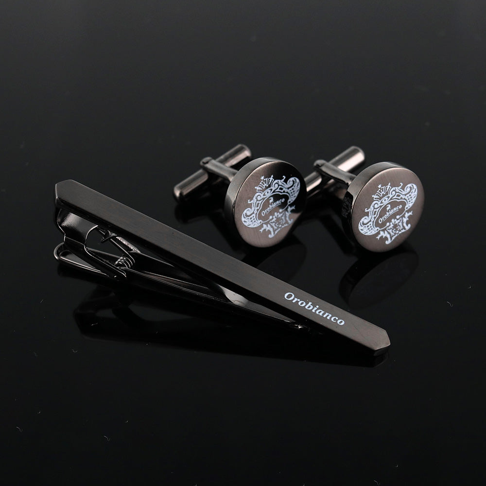 メンズアクセサリーコレクションのオロビアンコのタイピンとカフス。