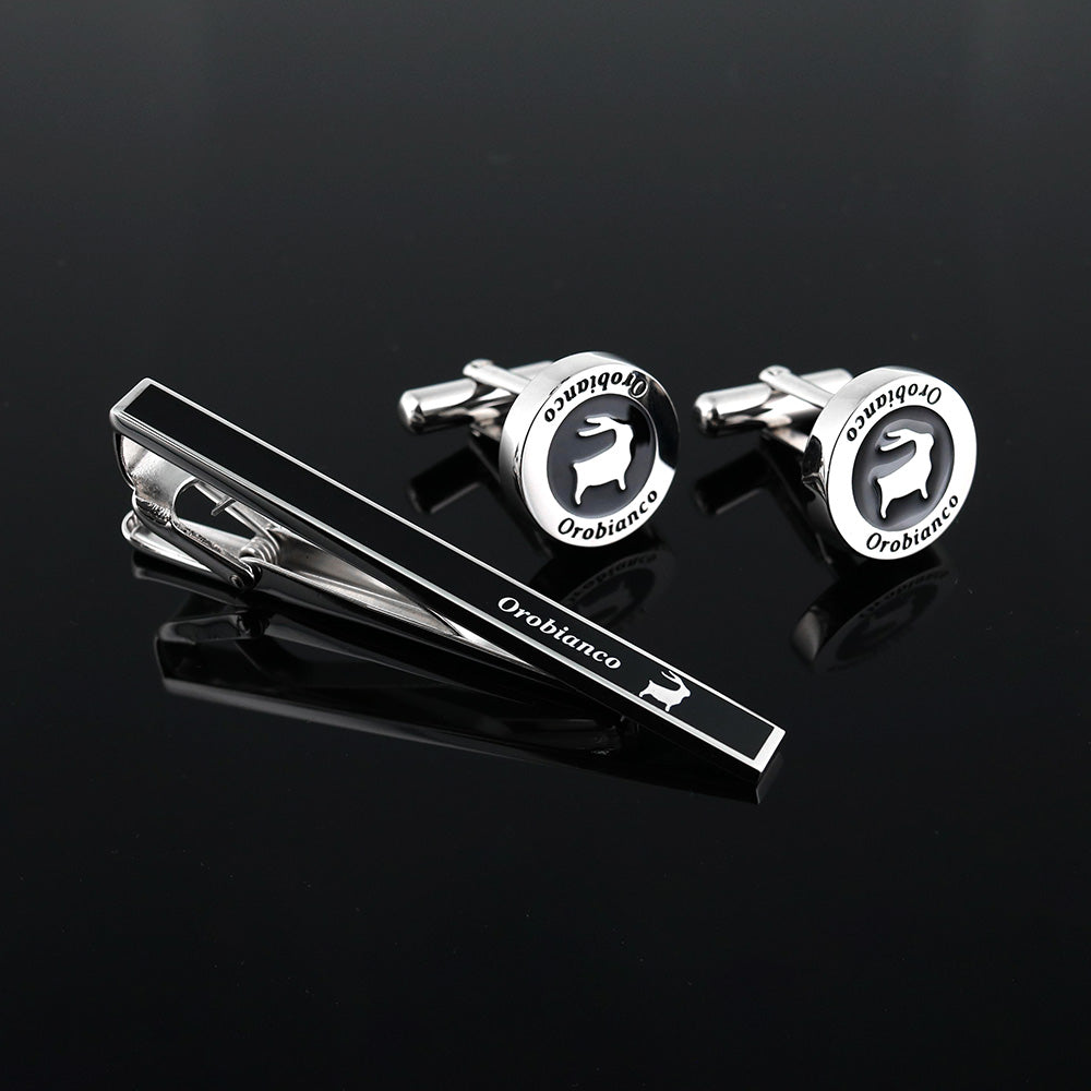 メンズアクセサリーコレクションのオロビアンコのタイピンとカフス。