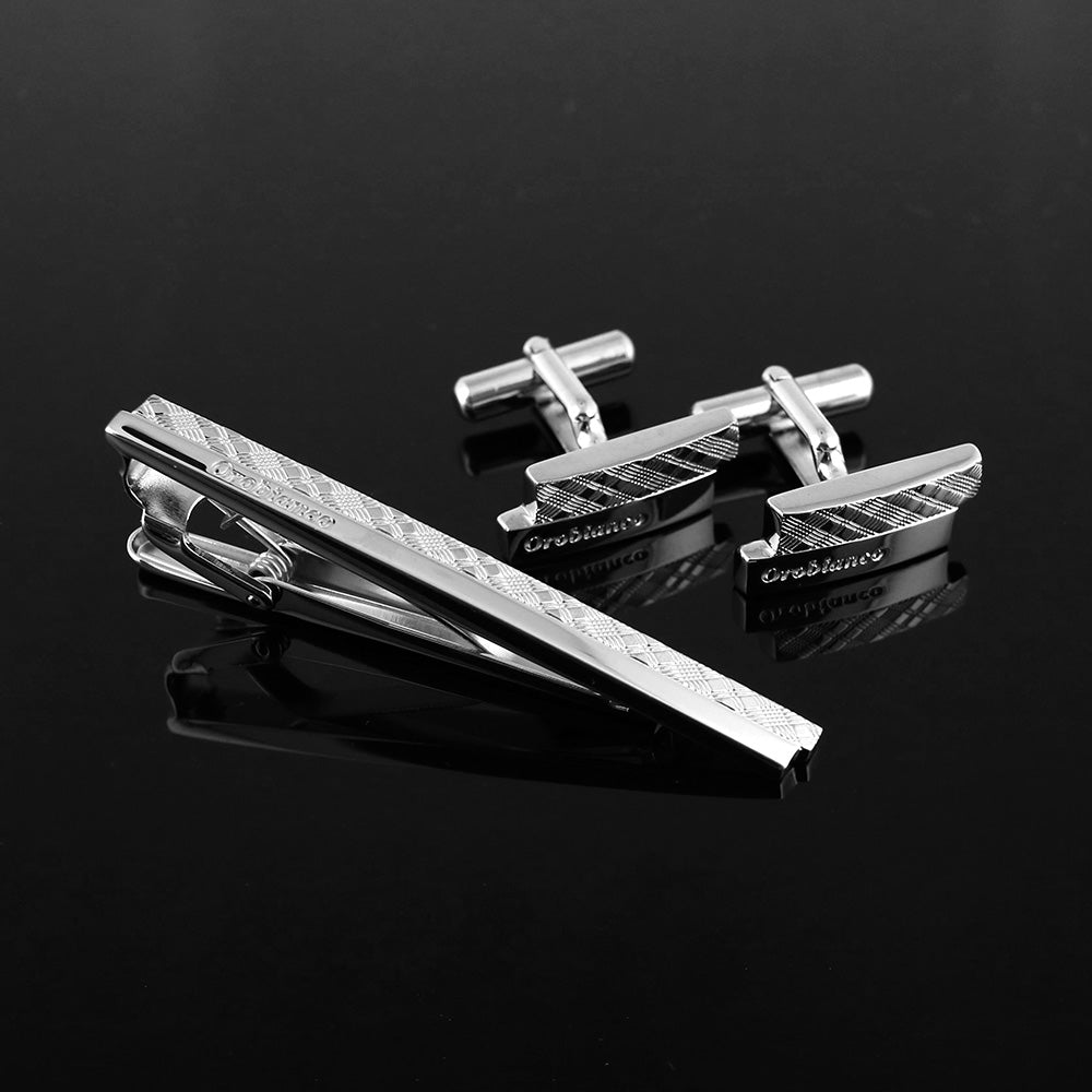 メンズアクセサリーコレクションのオロビアンコのタイピンとカフス。