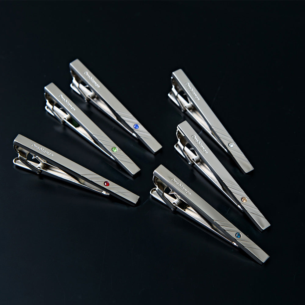 オロビアンコの「誕生石カラーシリーズ」は、各月を象徴する宝石のカラーをイメージしたクリスタルガラスをネクタイピンにあしらいました。