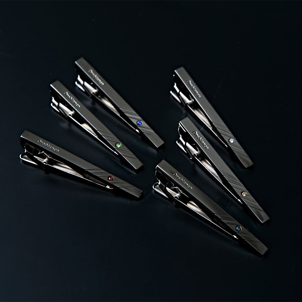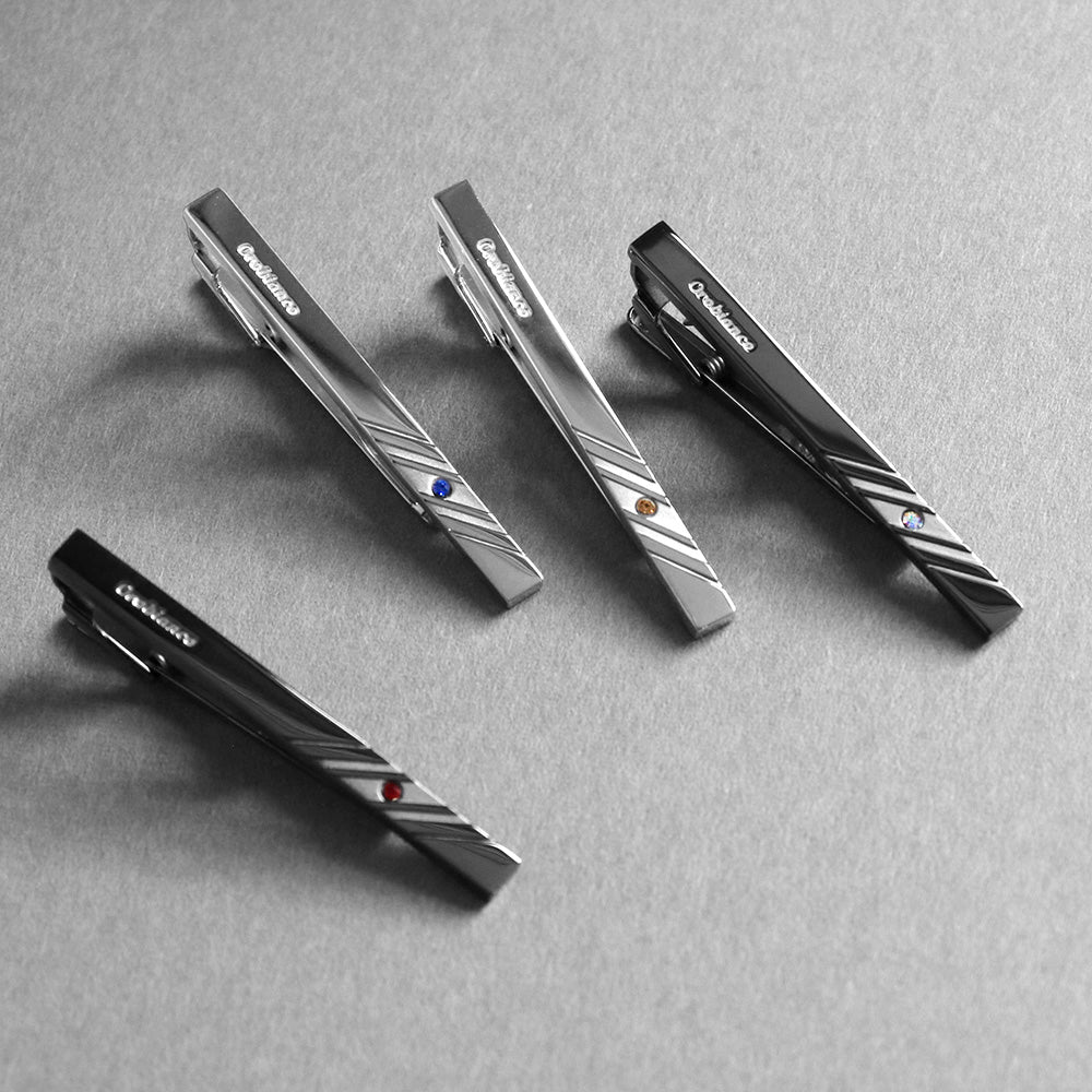 オロビアンコの「誕生石カラーシリーズ」は、各月を象徴する宝石のカラーをイメージしたクリスタルガラスをネクタイピンにあしらいました。