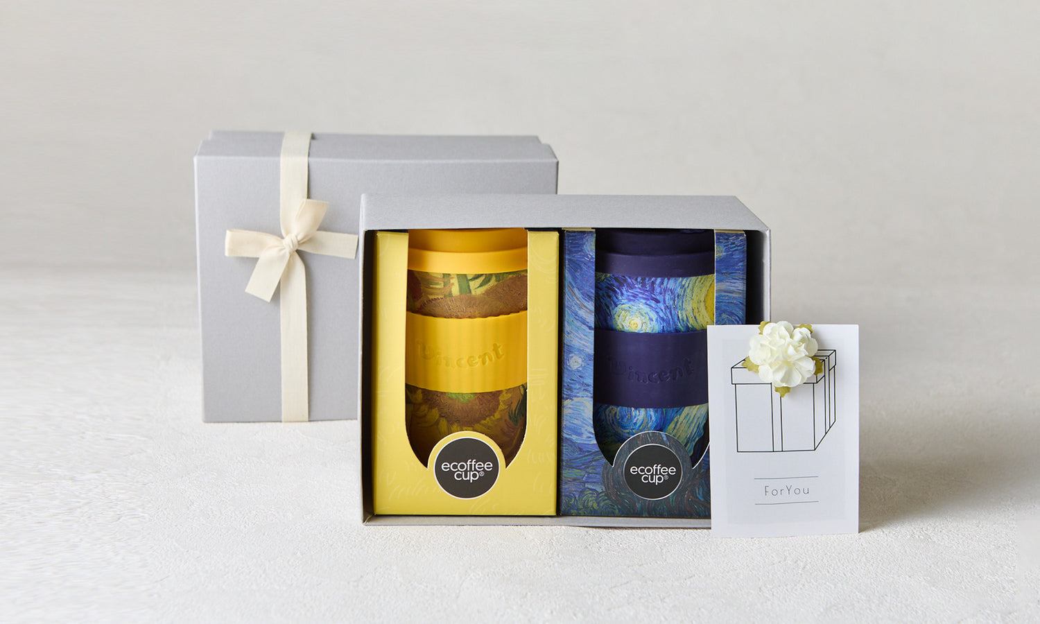 エコーヒーカップの人気デザイン、「ウィリアム・モリス」と「ヴィンセント・ヴァン・ゴッホ」シリーズをお好みに合わせて組み合わせできる特別な2個ギフトセットです。異なる世界観のアートを楽しめるため、「どちらを使おうかな?」と毎日の気分で選べるのが魅力。ご夫婦やご友人との“お揃い使い”にもぴったりです。